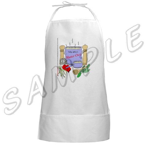 Product Number: 26105706 Tulip Valley's Master Chef Apron 18.99 Great for those Frog-get-togethers. Your family will know its time for yummy for their tummies when you put on this Tulip Valleys Master Chef Apron. This mid-length apron provides great coverage to help keep spills and splatters off your clothes. Makes a great gift for gourmets or grill-masters. Ties at neck and waist. Machine washable and guaranteed.