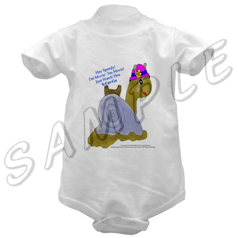 Product Number: 25934864 Frankie The Frog "S-Car-GO" Infant Creeper 10.99 This funny "S-Car-GO" Infant Creeper features "Shelley Snail" from the story "Easter Vacation" Little tots love creepin’, crawlin’ and sleepin’ in our super comfy, 100% cotton . Double needle ribbed binding for a perfect fit and to prevent leaks.